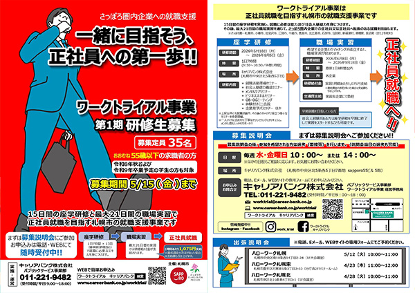 ※事業期間中の札幌市への個人情報の提出ならびに事業終了後の就業調査、及び3年間の定着調査等に同意していただきます。